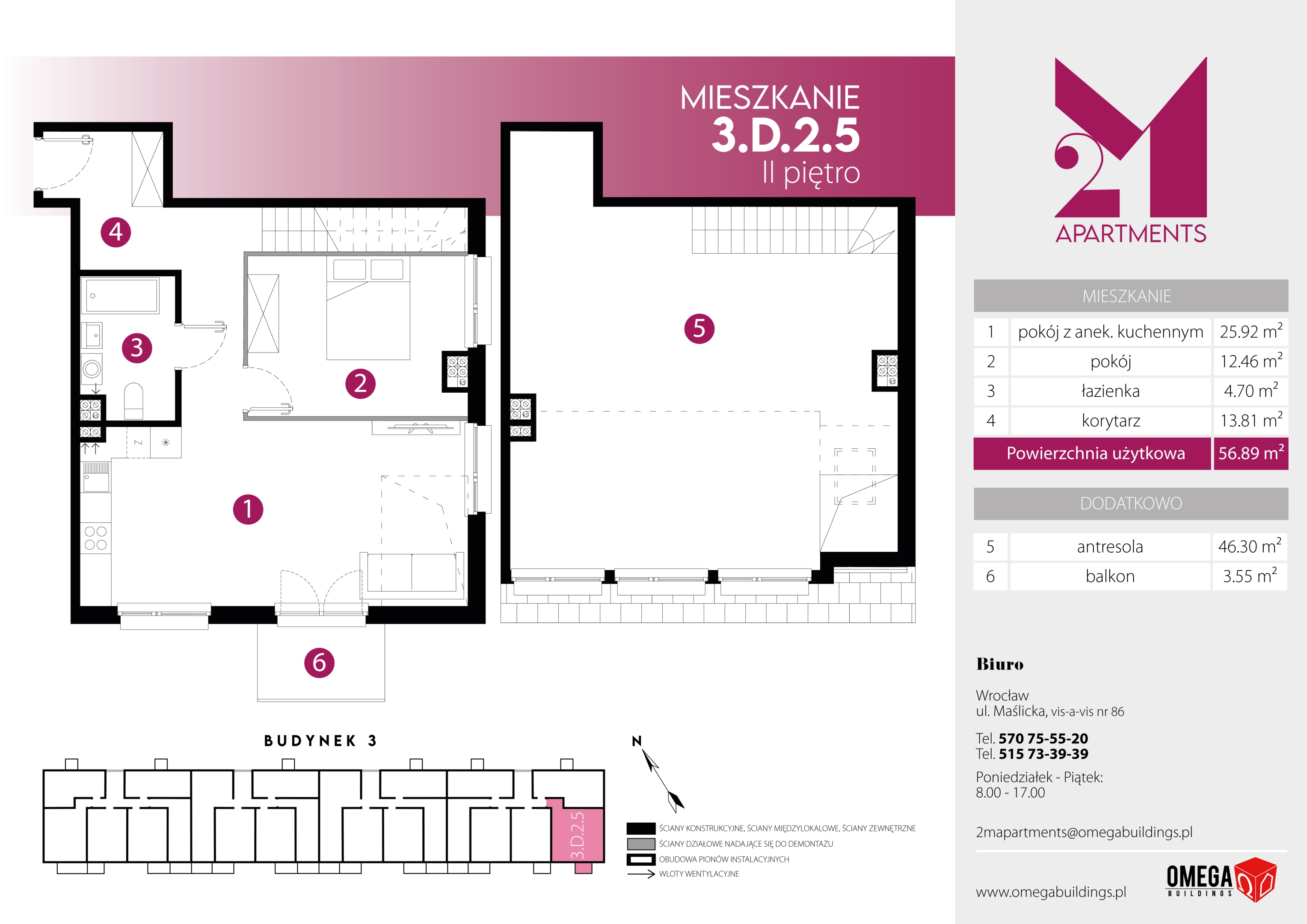 Na całość kompleksu 2M Apartments będzie składało się 5 nowoczesnych budynków, w których znajdą się mieszkania o rozmaitych metrażach: od 37 mkw do 103 mkw. Do wyboru będą kompaktowe lokale dwupokojowe, wygodne trzypokojowe mieszkania i czteropokojowe apartamenty. Dla osób ceniących sobie większą przestrzeń udostępniamy także do sprzedaży mieszkania dwupoziomowe z antresolami o powierzchni od 15 mkw do 36 mkw.