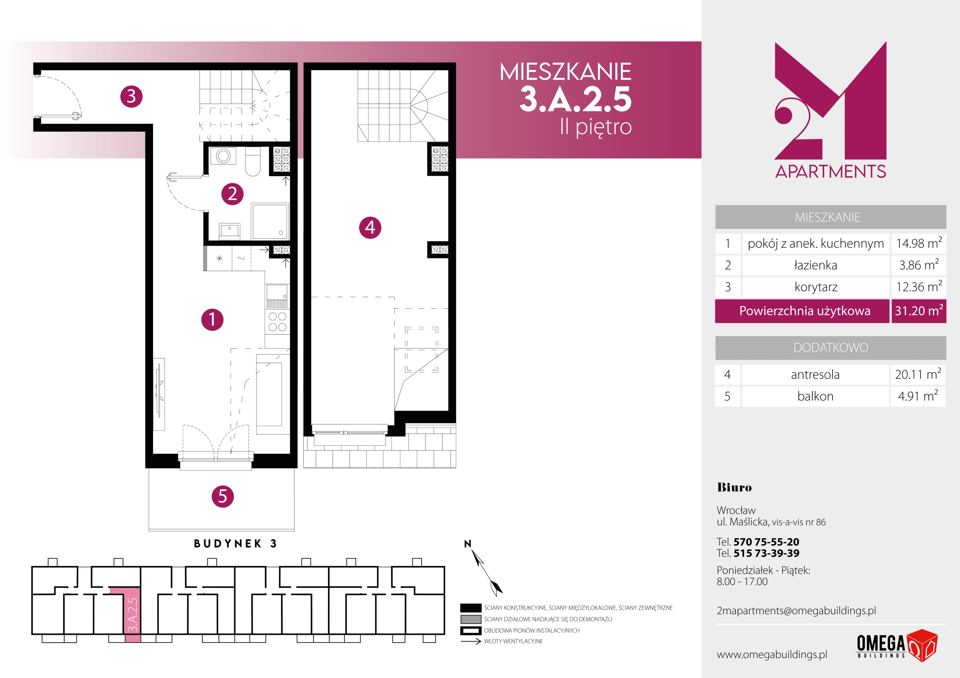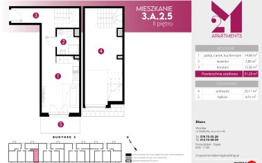 Na całość kompleksu 2M Apartments będzie składało się 5 nowoczesnych budynków, w których znajdą się mieszkania o rozmaitych metrażach: od 37 mkw do 103 mkw. Do wyboru będą kompaktowe lokale dwupokojowe, wygodne trzypokojowe mieszkania i czteropokojowe apartamenty. Dla osób ceniących sobie większą przestrzeń udostępniamy także do sprzedaży mieszkania dwupoziomowe z antresolami o powierzchni od 15 mkw do 36 mkw.