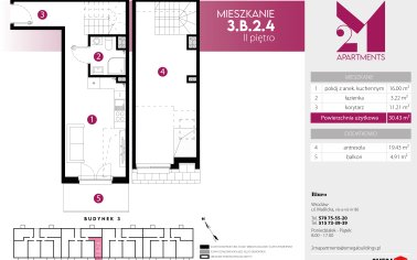 Na całość kompleksu 2M Apartments będzie składało się 5 nowoczesnych budynków, w których znajdą się mieszkania o rozmaitych metrażach: od 37 mkw do 103 mkw. Do wyboru będą kompaktowe lokale dwupokojowe, wygodne trzypokojowe mieszkania i czteropokojowe apartamenty. Dla osób ceniących sobie większą przestrzeń udostępniamy także do sprzedaży mieszkania dwupoziomowe z antresolami o powierzchni od 15 mkw do 36 mkw.