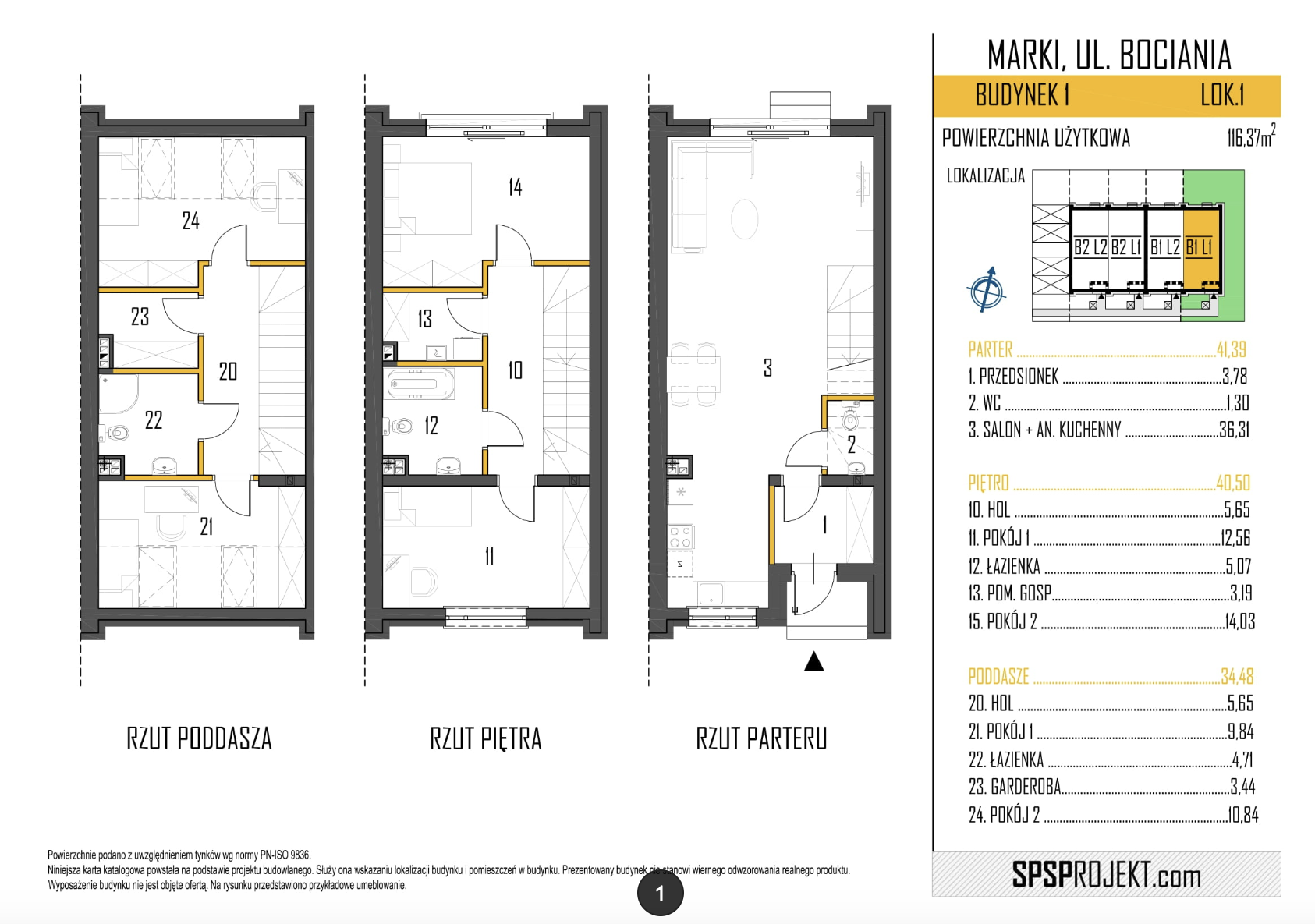 Łączna projektowana powierzchnia użytkowa lokalu wynosi 116,37 m2
