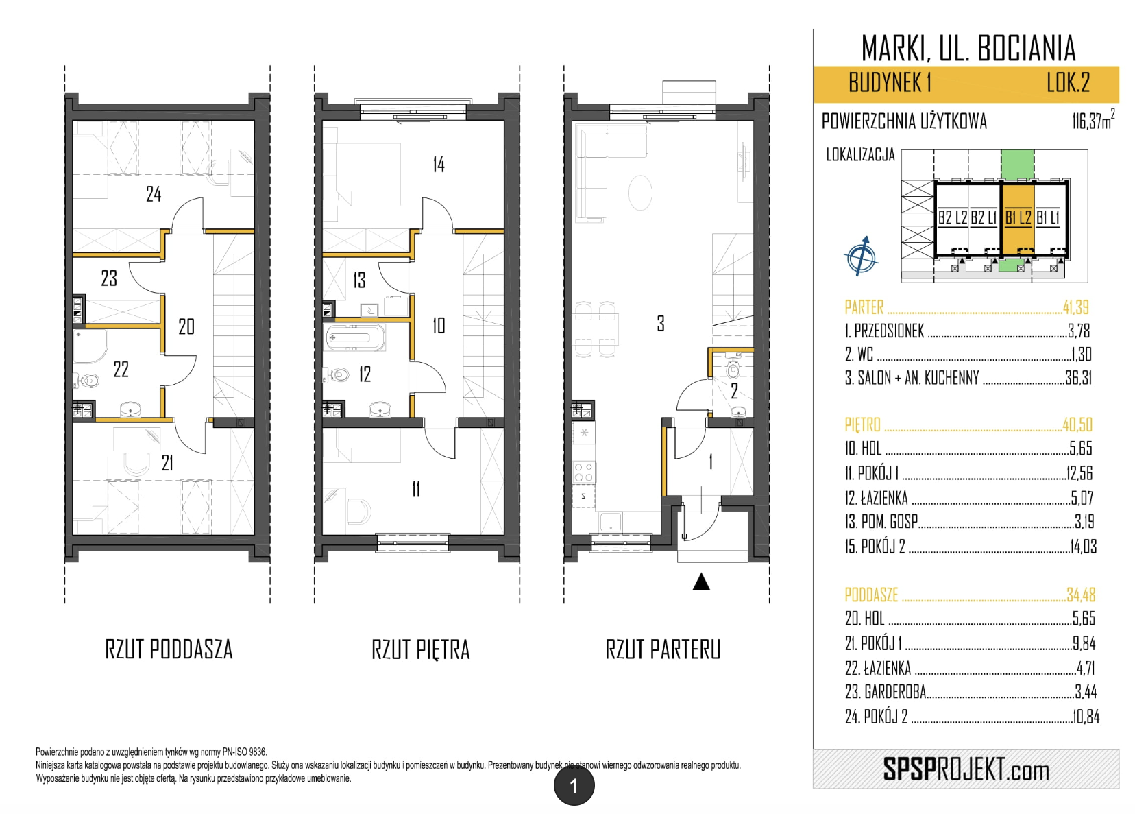 Łączna projektowana powierzchnia użytkowa lokalu wynosi 116,37 m2