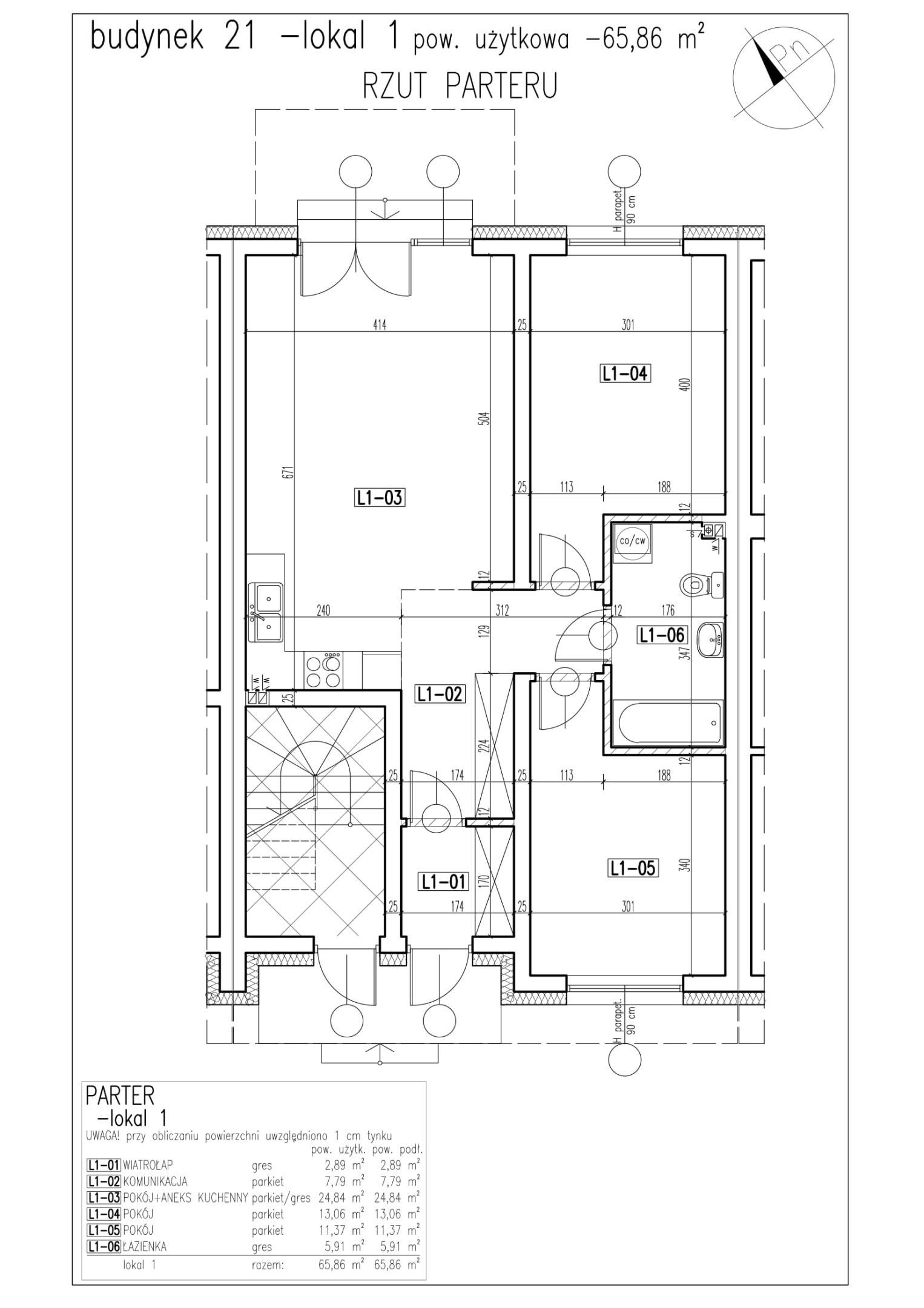 Powierzchnia 65.86 m2