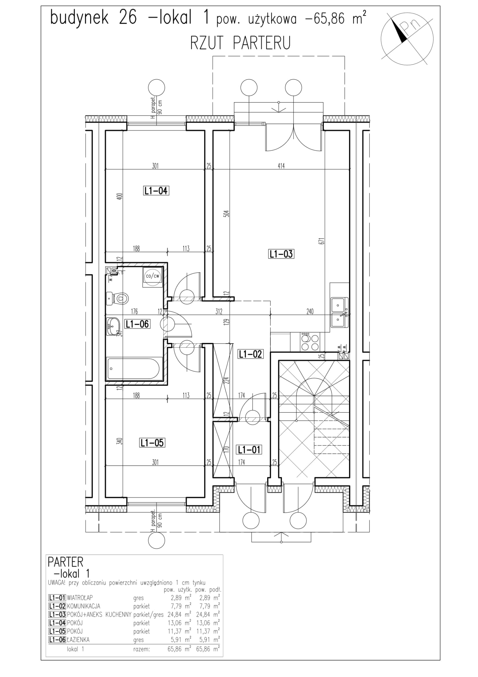 Powierzchnia 65.86 m2