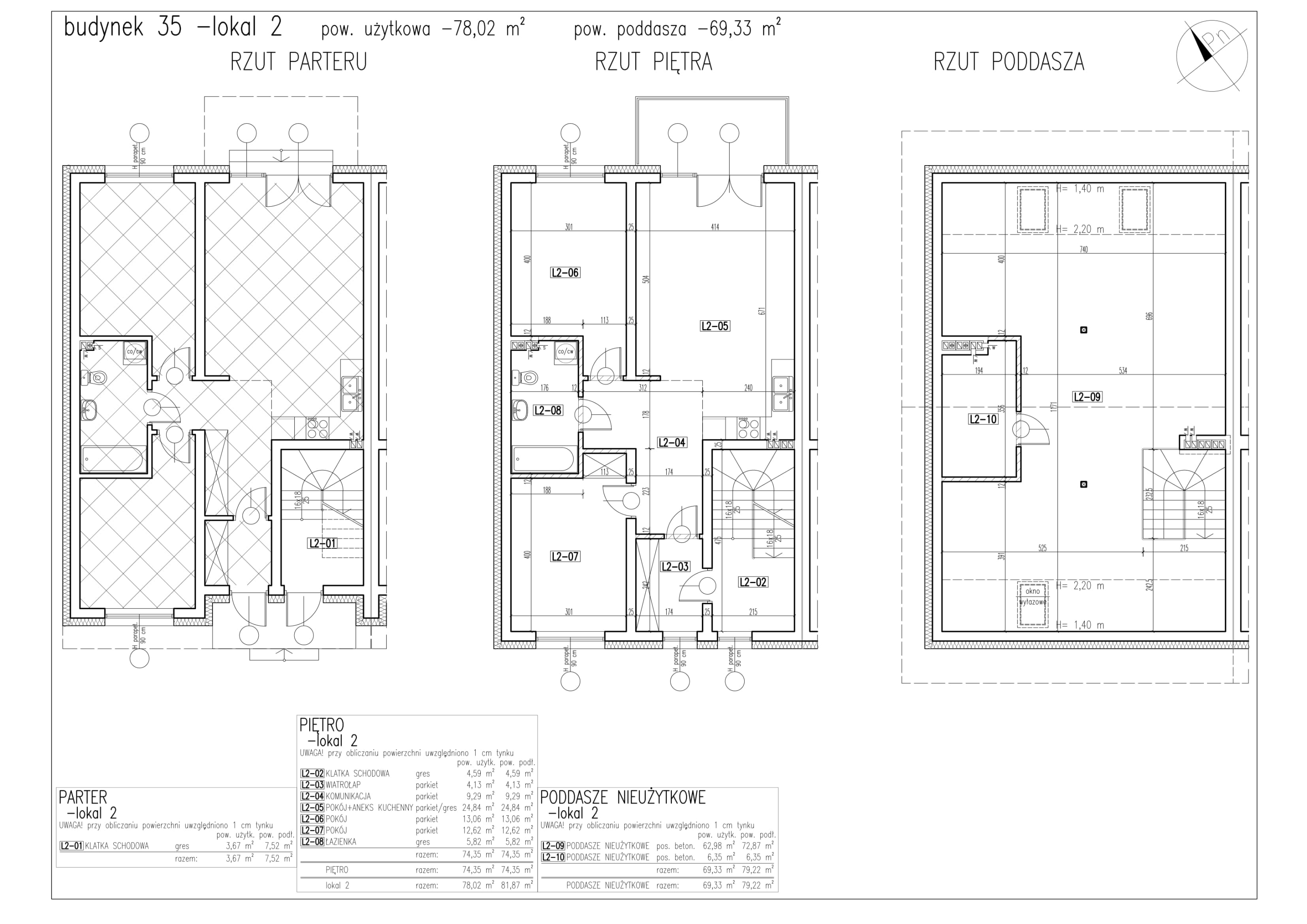 - poddasze nieużytkowe – 69,33 m2