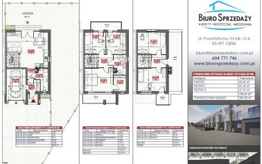 Dodatkowo do każdego skrajnego budynku przynależy taras o powierzchni 18,87 m² oraz 3 balkony.
