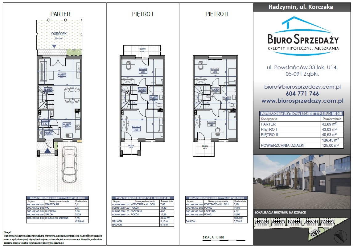 Budynki środkowe z własną działką i miejscem parkingowym o powierzchni użytkowej 126,45 m2, w skład budynku wchodzą: