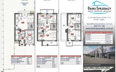 Dodatkowo do każdego skrajnego budynku przynależy taras o powierzchni 18,87 m² oraz 3 balkony.