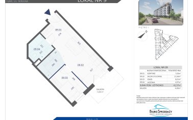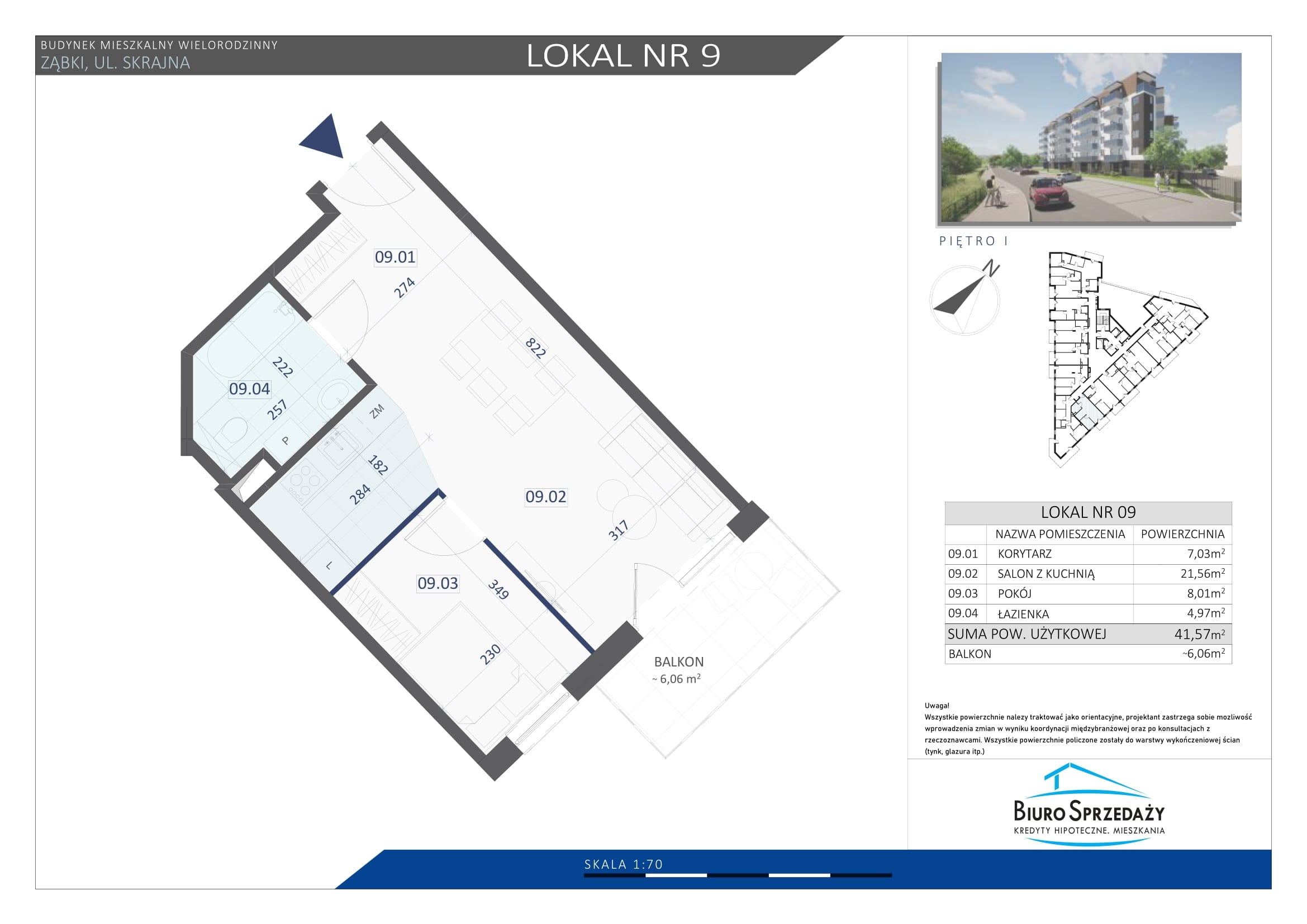 Całkowita powierzchnia mieszkania: 41,57 m²