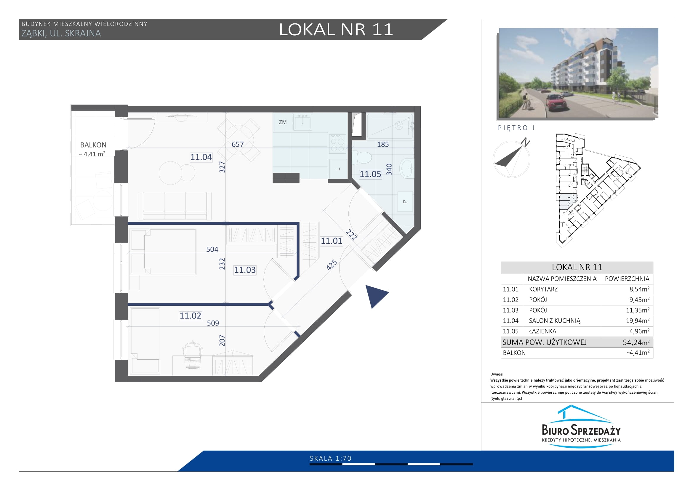 Całkowita powierzchnia mieszkania: 54,24 m²