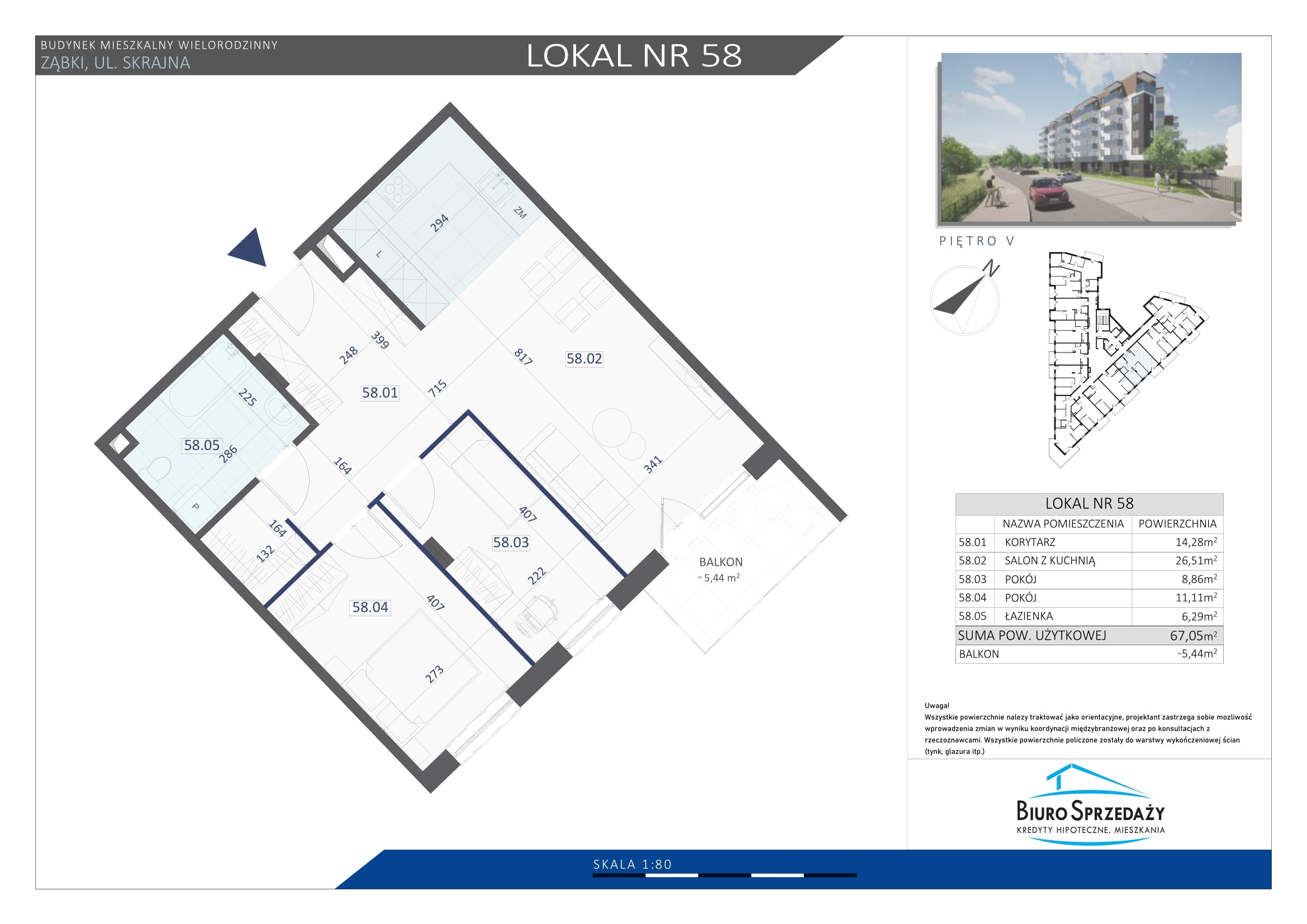 Całkowita powierzchnia mieszkania: 67,05 m²