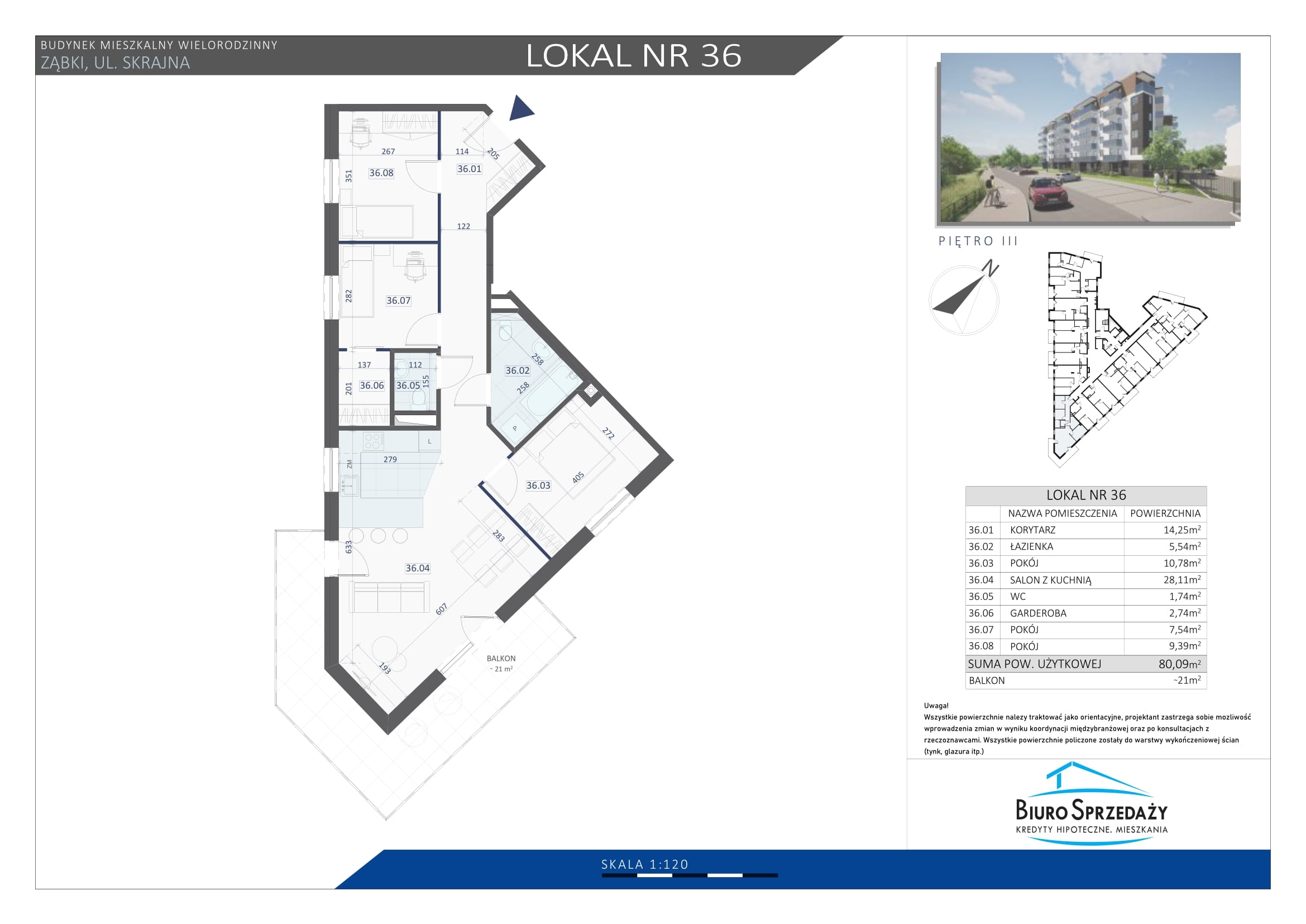 Całkowita powierzchnia mieszkania: 80,09 m²
