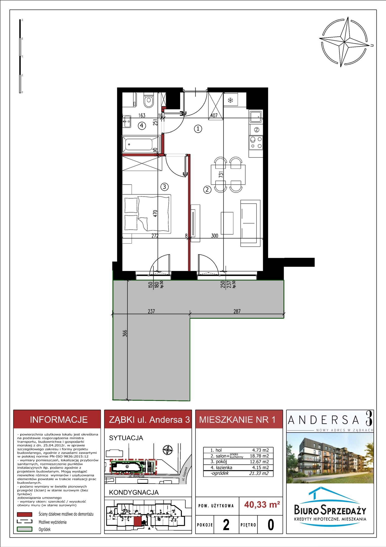 Całkowita powierzchnia mieszkania: 40,33 m²