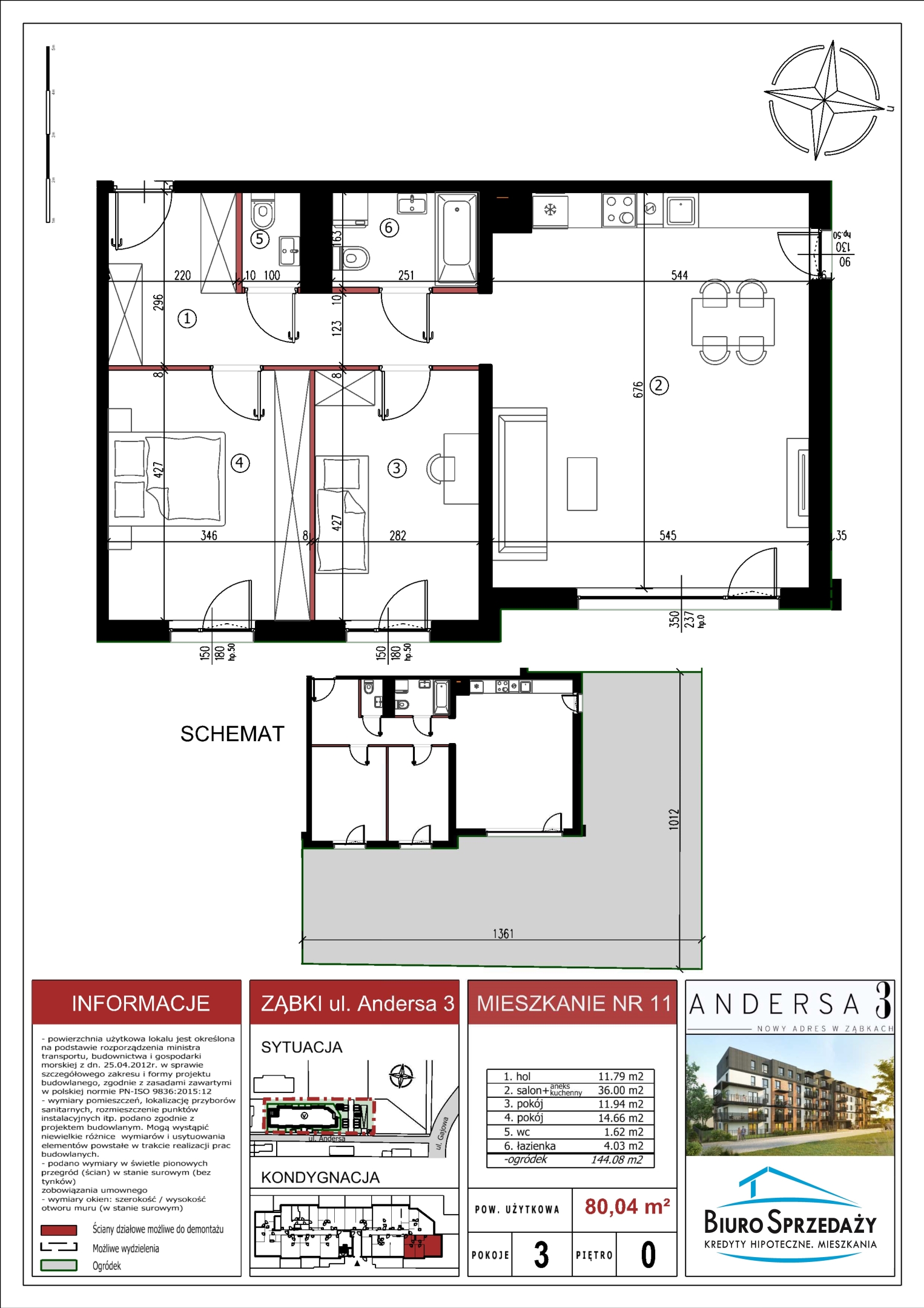 Całkowita powierzchnia mieszkania: 80,04 m²