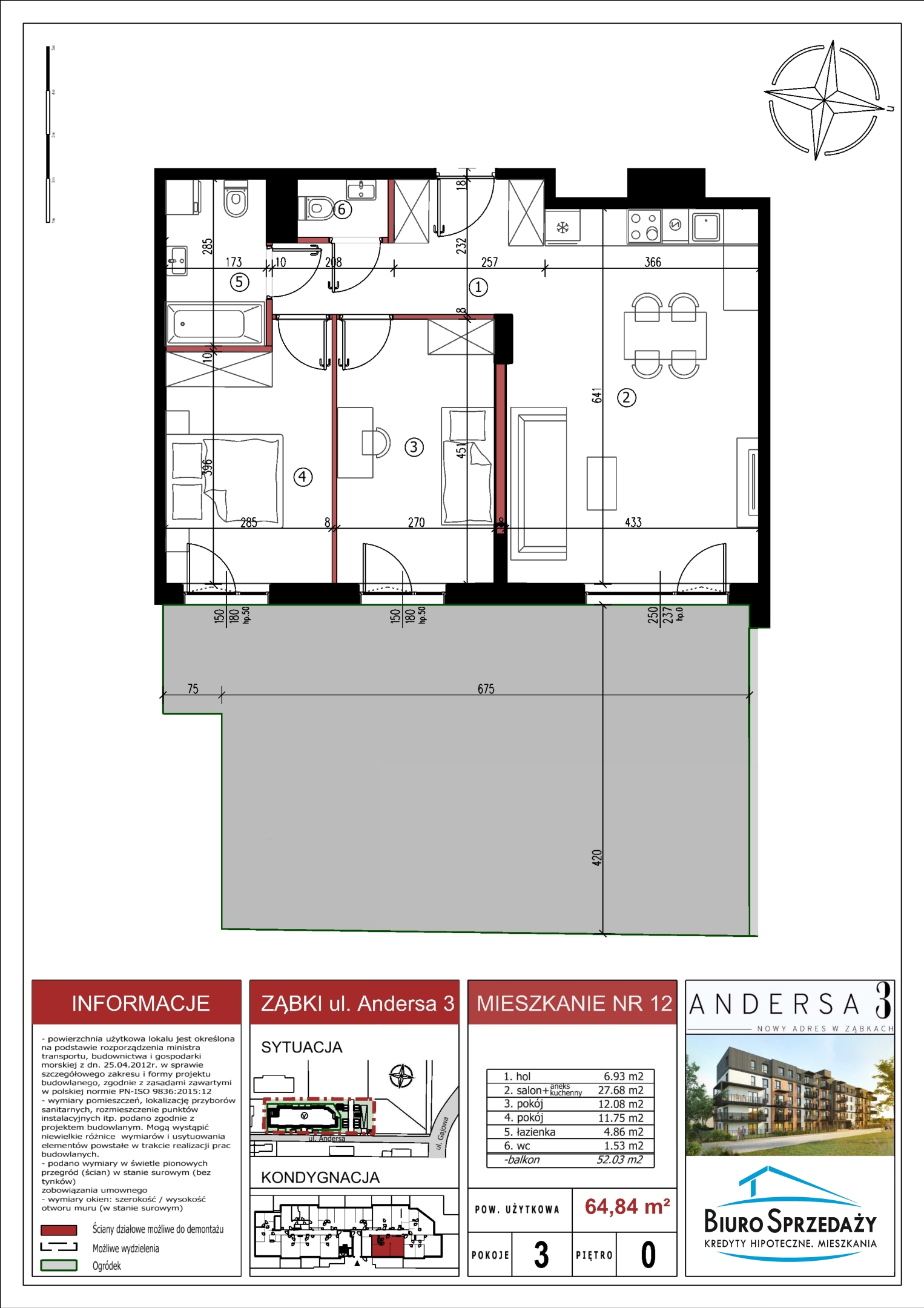 Całkowita powierzchnia mieszkania: 64,84 m²