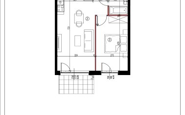 Całkowita powierzchnia mieszkania: 42,20 m²