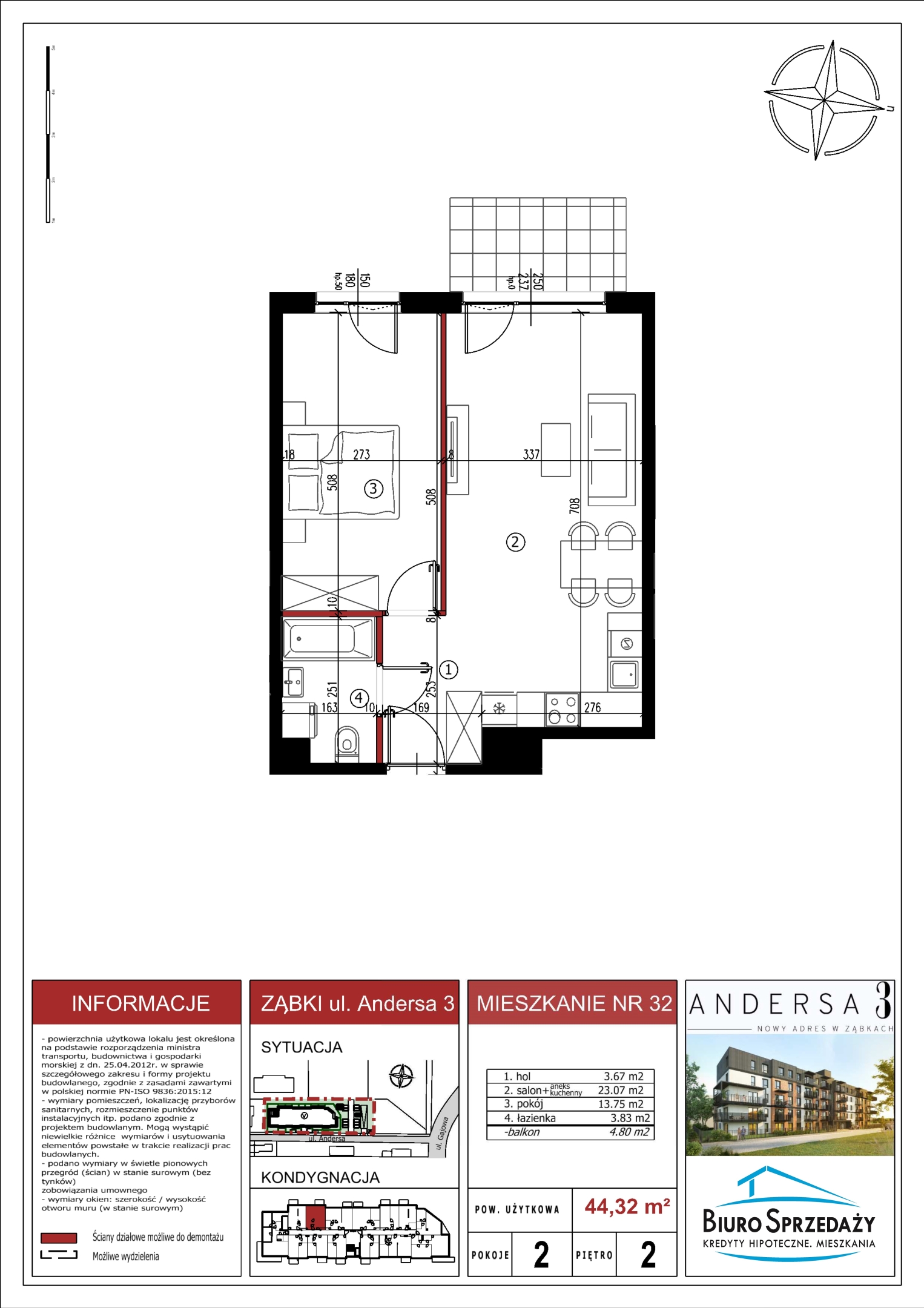 Powierzchnia 44.32 m2