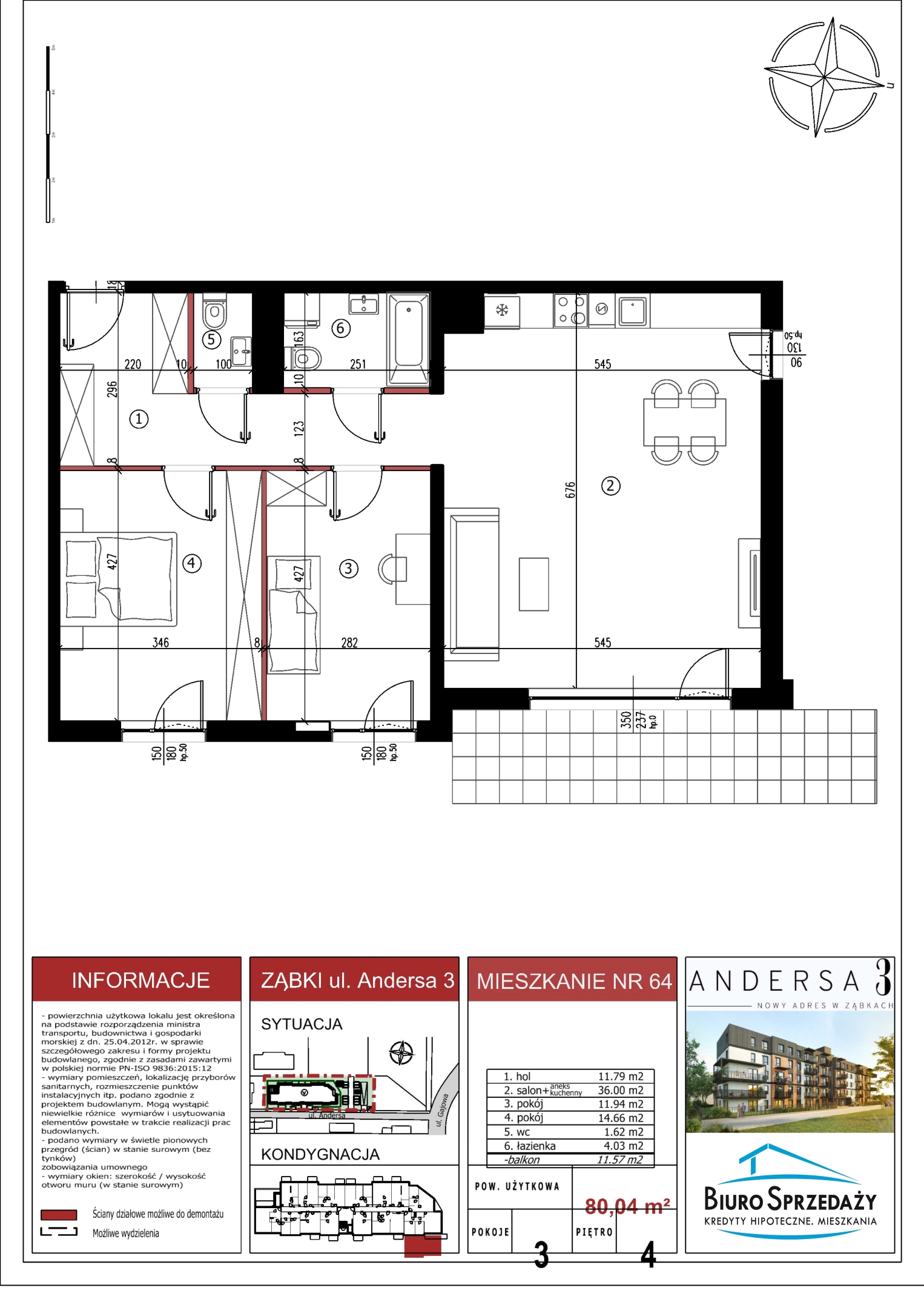 Całkowita powierzchnia mieszkania: 80,04 m²