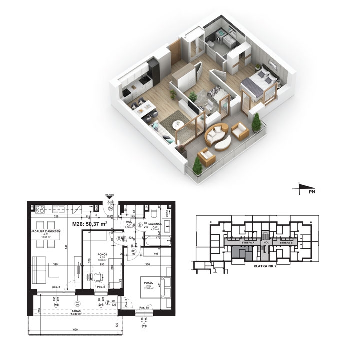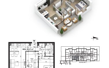 Całkowita powierzchnia mieszkania: 50,37 m²