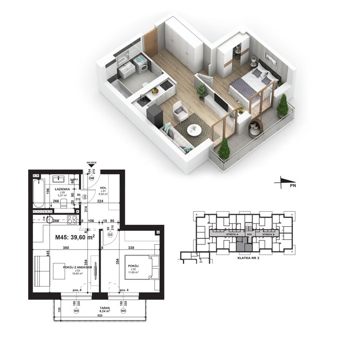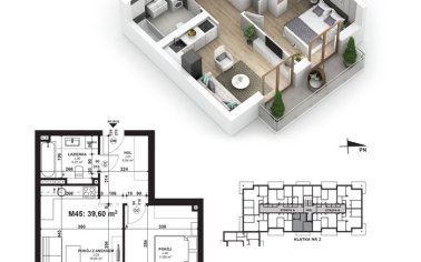 Całkowita powierzchnia mieszkania: 39,60 m²