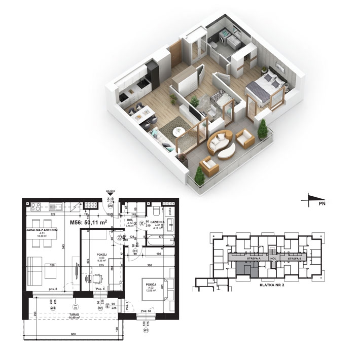 Całkowita powierzchnia mieszkania: 50,11 m²
