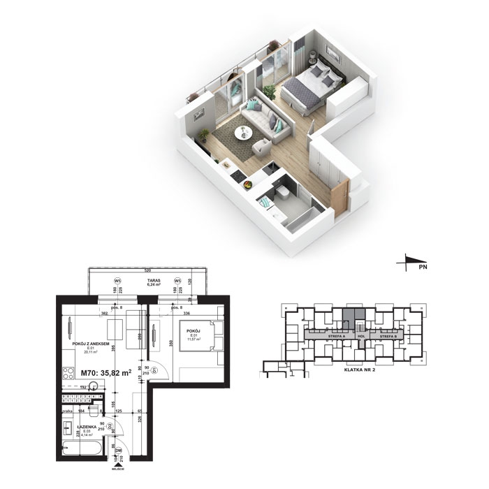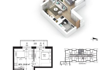 Całkowita powierzchnia mieszkania: 35,82 m²