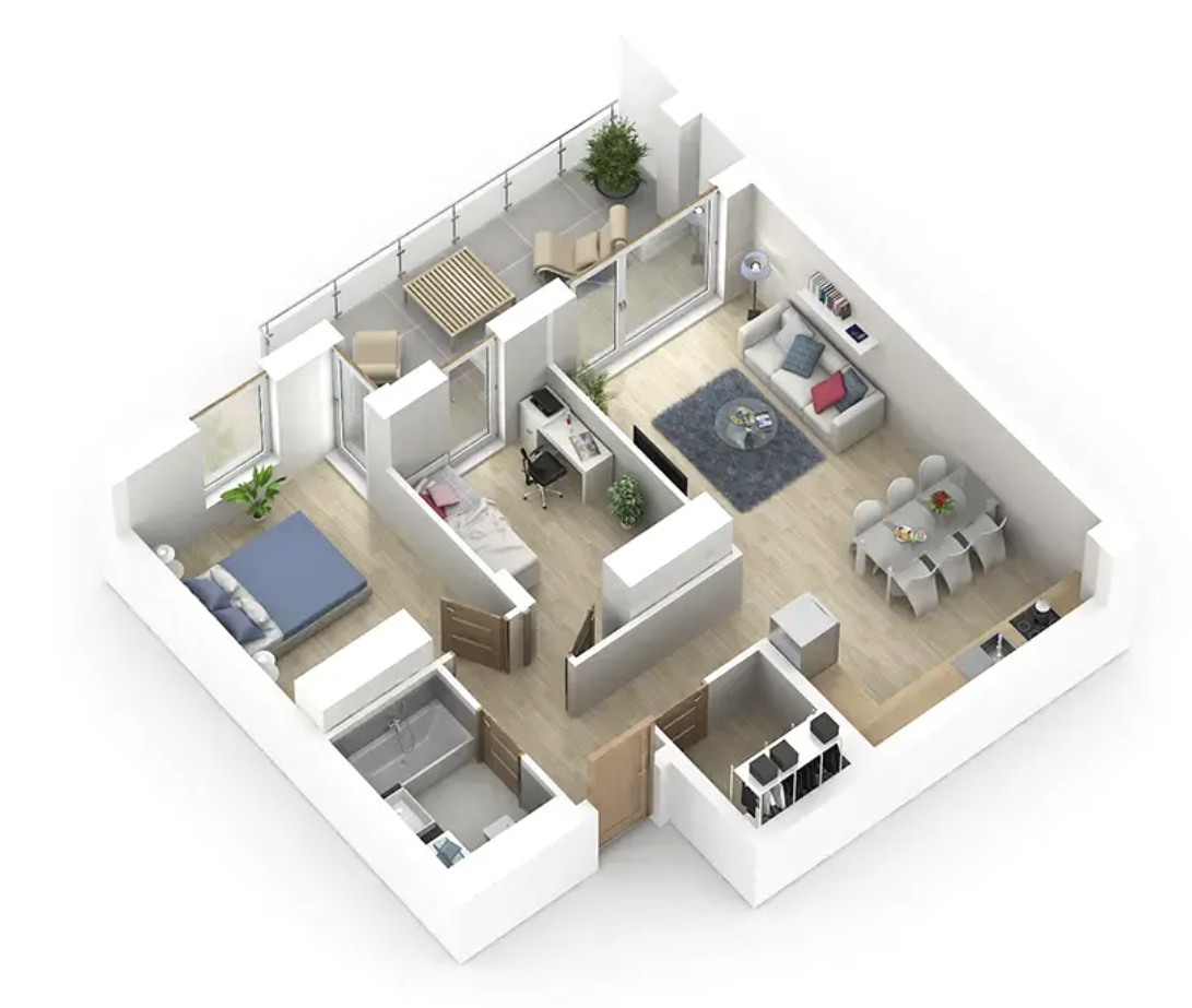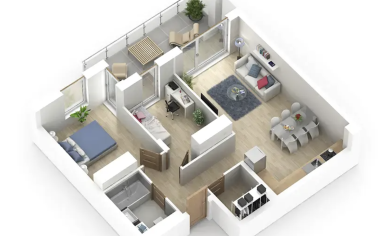 Całkowita powierzchnia mieszkania: 59,16 m²