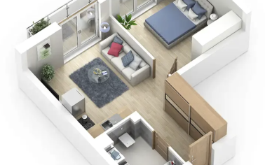 Całkowita powierzchnia mieszkania: 35,85 m²