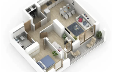 Całkowita powierzchnia mieszkania: 59,13 m²