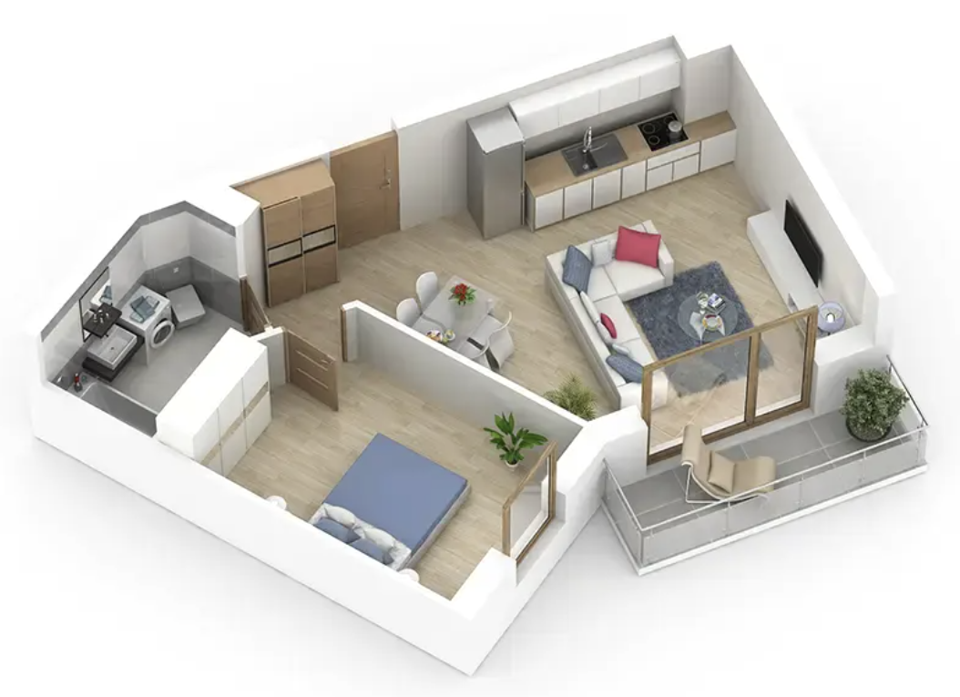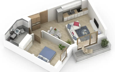 Całkowita powierzchnia mieszkania: 44,45 m²