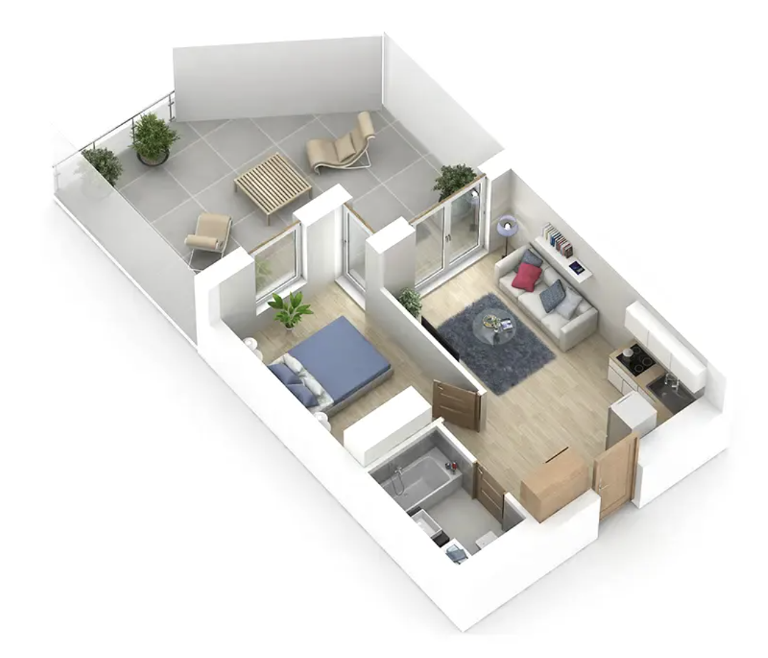 Całkowita powierzchnia mieszkania: 34,65 m²