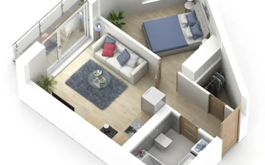 Całkowita powierzchnia mieszkania: 34,82 m²