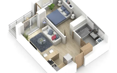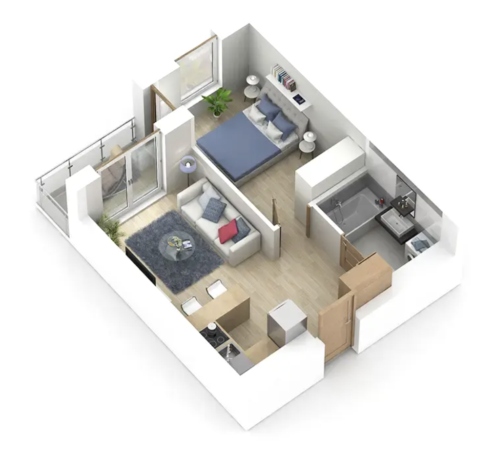 Całkowita powierzchnia mieszkania: 34,50 m²