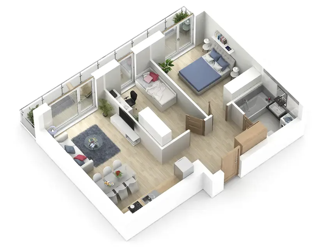 Całkowita powierzchnia mieszkania: 54,25 m²
