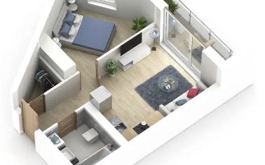 Całkowita powierzchnia mieszkania: 34,84 m²
