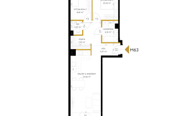Salon z aneksem: 24,56 m²