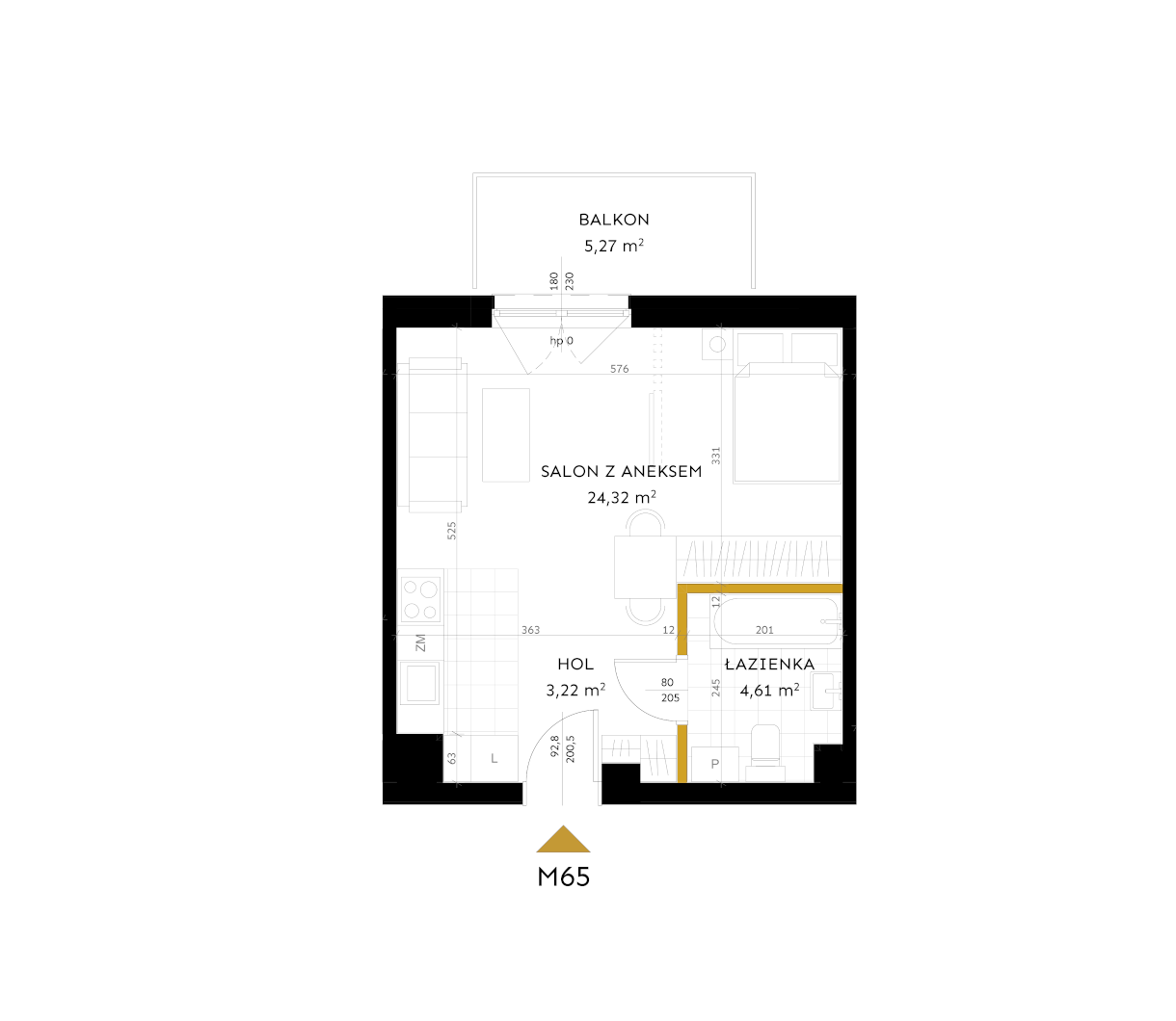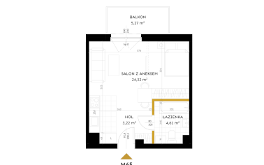 Salon z aneksem: 24,32 m²