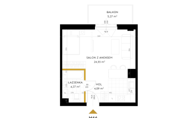 Salon z aneksem: 24,55 m²