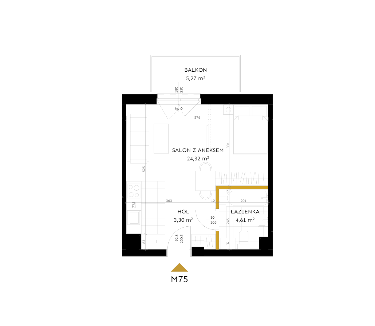 Salon z aneksem: 24,32 m²