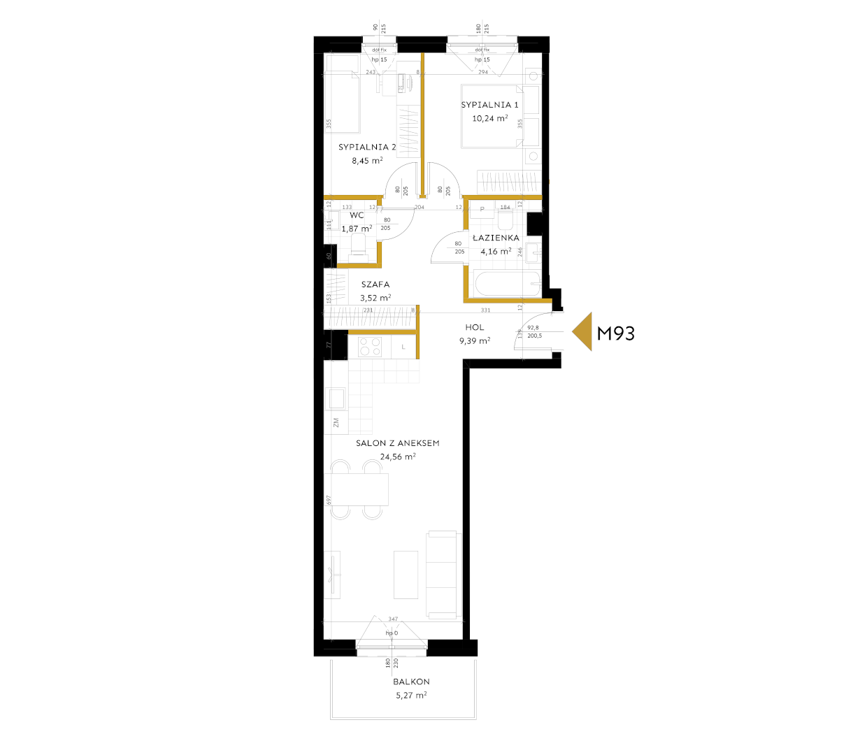 Salon z aneksem: 24,56 m²