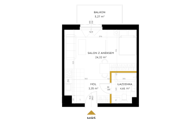 Salon z aneksem: 24,32 m²