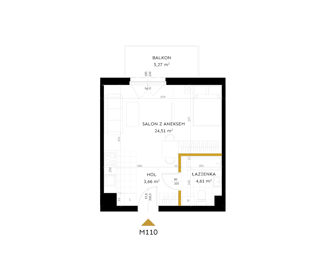 Salon z aneksem: 24,51 m²