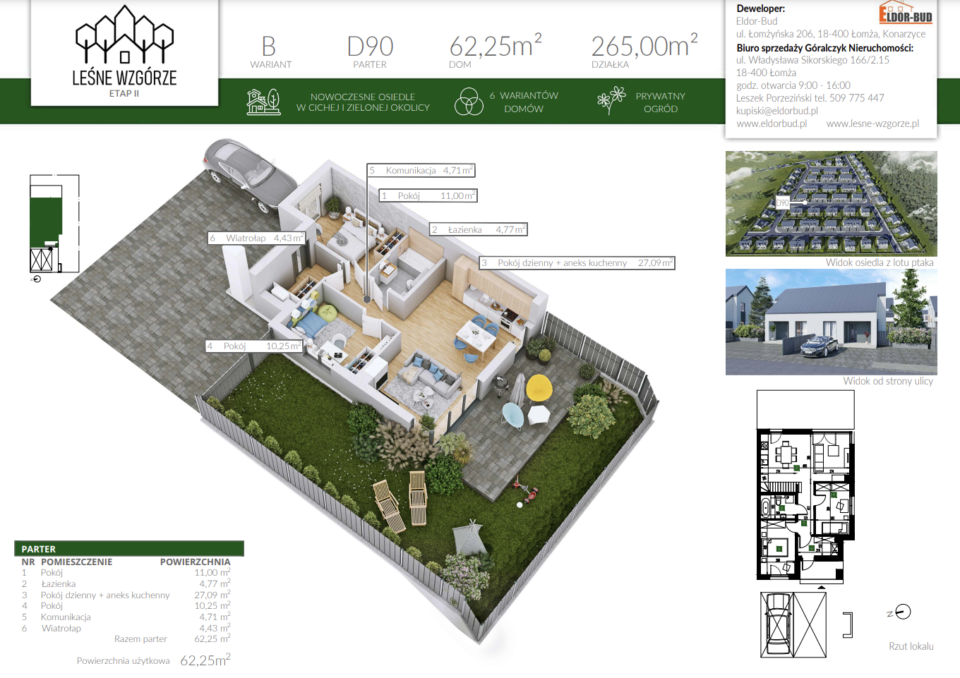 Osiedle LEŚNE WZGÓRZE zaprojektowano z myślą o wszystkich, którzy szukają kameralnej i spokojnej lokalizacji, jednak cenią sobie wygodę w codziennym życiu. Drogi wewnętrzne na osiedlu – ul. Sadowa i część ul. Świerkowej zostaną utwardzone kostką brukową oraz wyposażone w instalacje oświetlenia ulicznego.