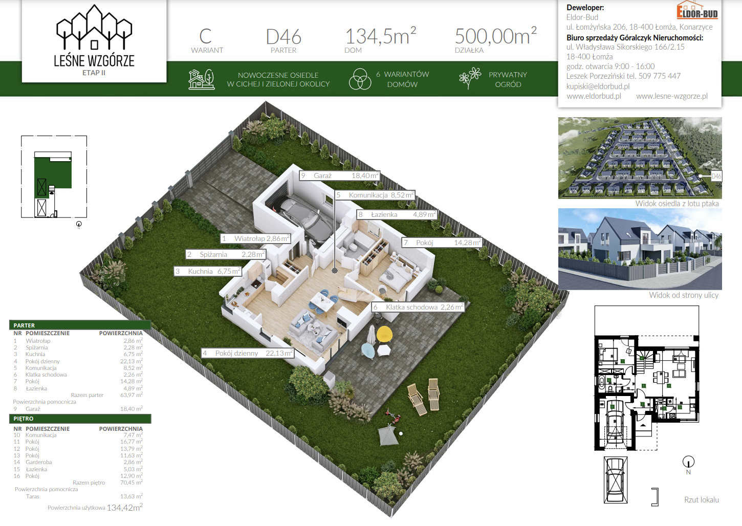 Osiedle LEŚNE WZGÓRZE zaprojektowano z myślą o wszystkich, którzy szukają kameralnej i spokojnej lokalizacji, jednak cenią sobie wygodę w codziennym życiu. Drogi wewnętrzne na osiedlu – ul. Sadowa i część ul. Świerkowej zostaną utwardzone kostką brukową oraz wyposażone w instalacje oświetlenia ulicznego.
