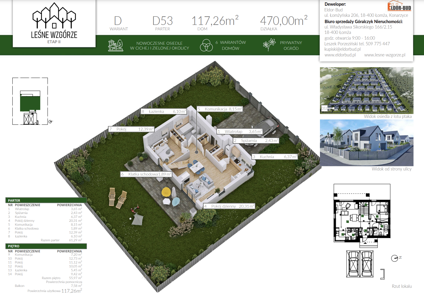 Osiedle LEŚNE WZGÓRZE zaprojektowano z myślą o wszystkich, którzy szukają kameralnej i spokojnej lokalizacji, jednak cenią sobie wygodę w codziennym życiu. Drogi wewnętrzne na osiedlu – ul. Sadowa i część ul. Świerkowej zostaną utwardzone kostką brukową oraz wyposażone w instalacje oświetlenia ulicznego.