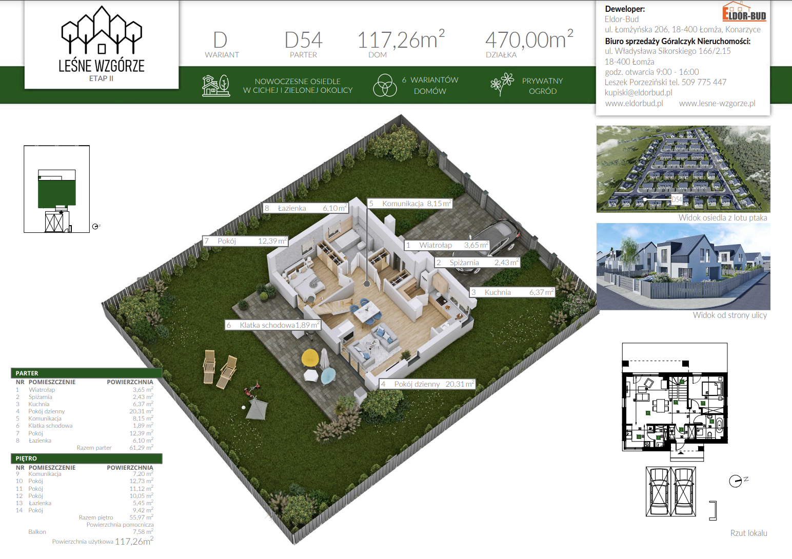 Osiedle LEŚNE WZGÓRZE zaprojektowano z myślą o wszystkich, którzy szukają kameralnej i spokojnej lokalizacji, jednak cenią sobie wygodę w codziennym życiu. Drogi wewnętrzne na osiedlu – ul. Sadowa i część ul. Świerkowej zostaną utwardzone kostką brukową oraz wyposażone w instalacje oświetlenia ulicznego.