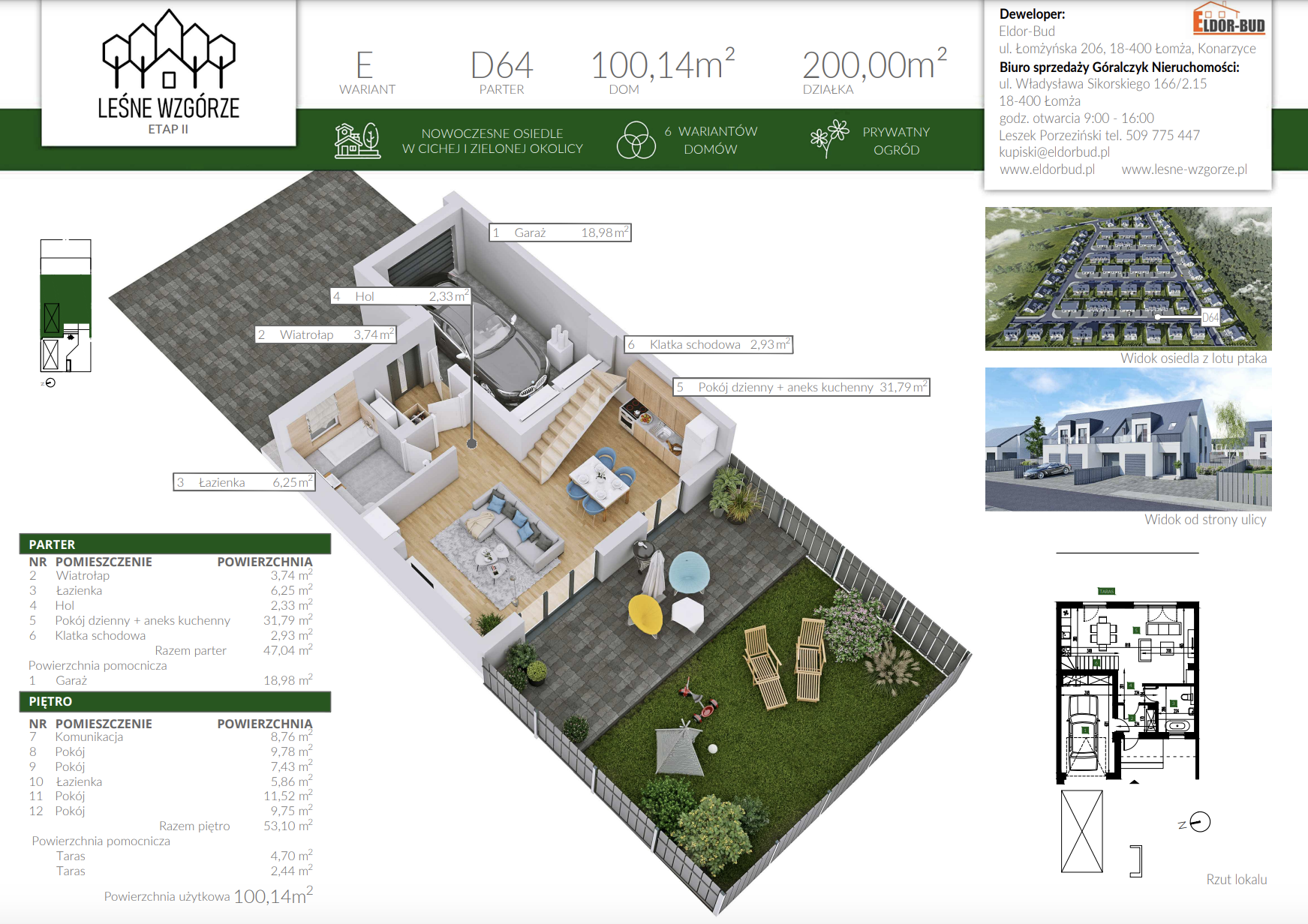 Osiedle LEŚNE WZGÓRZE zaprojektowano z myślą o wszystkich, którzy szukają kameralnej i spokojnej lokalizacji, jednak cenią sobie wygodę w codziennym życiu. Drogi wewnętrzne na osiedlu – ul. Sadowa i część ul. Świerkowej zostaną utwardzone kostką brukową oraz wyposażone w instalacje oświetlenia ulicznego.