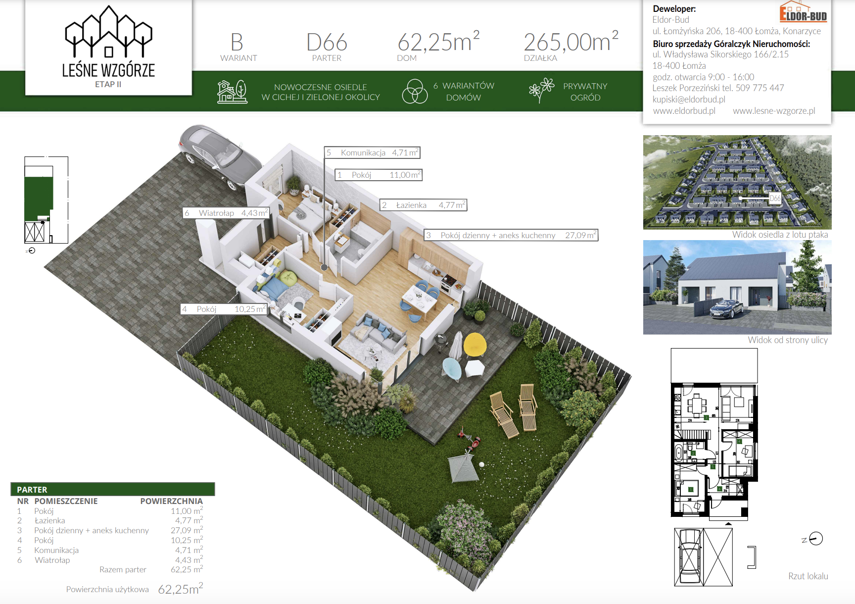 Osiedle LEŚNE WZGÓRZE zaprojektowano z myślą o wszystkich, którzy szukają kameralnej i spokojnej lokalizacji, jednak cenią sobie wygodę w codziennym życiu. Drogi wewnętrzne na osiedlu – ul. Sadowa i część ul. Świerkowej zostaną utwardzone kostką brukową oraz wyposażone w instalacje oświetlenia ulicznego.