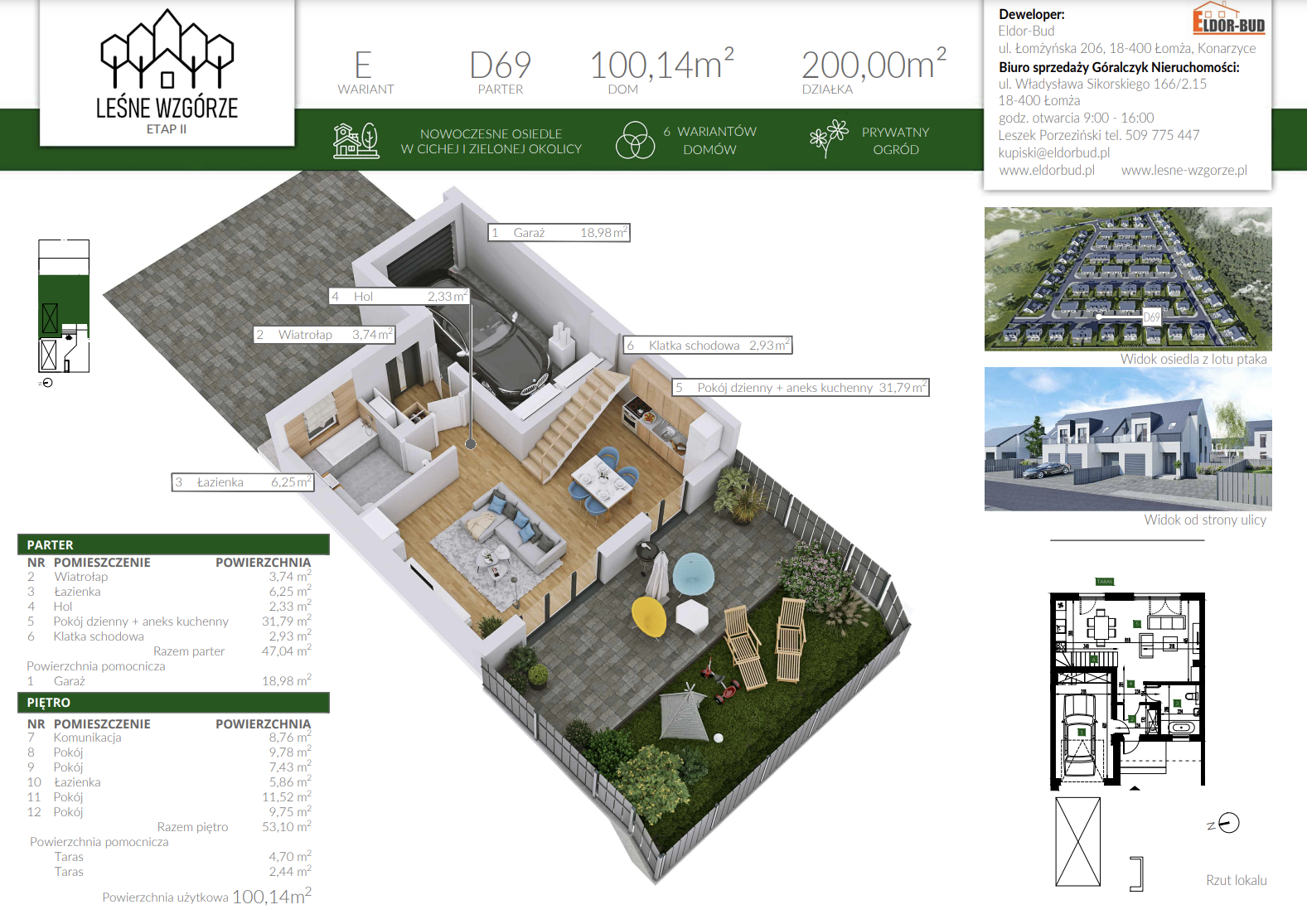 Osiedle LEŚNE WZGÓRZE zaprojektowano z myślą o wszystkich, którzy szukają kameralnej i spokojnej lokalizacji, jednak cenią sobie wygodę w codziennym życiu. Drogi wewnętrzne na osiedlu – ul. Sadowa i część ul. Świerkowej zostaną utwardzone kostką brukową oraz wyposażone w instalacje oświetlenia ulicznego.
