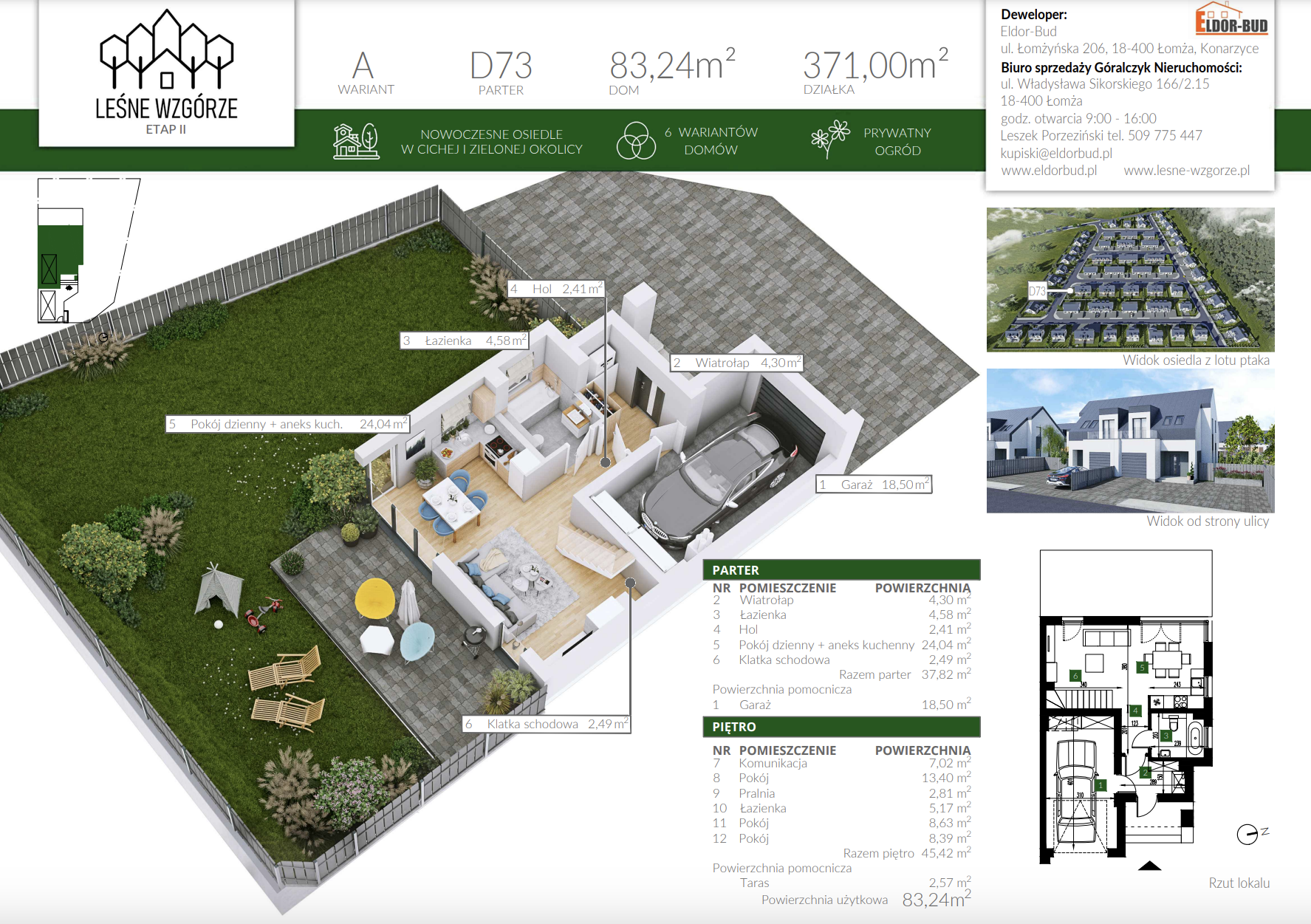 Osiedle LEŚNE WZGÓRZE zaprojektowano z myślą o wszystkich, którzy szukają kameralnej i spokojnej lokalizacji, jednak cenią sobie wygodę w codziennym życiu. Drogi wewnętrzne na osiedlu – ul. Sadowa i część ul. Świerkowej zostaną utwardzone kostką brukową oraz wyposażone w instalacje oświetlenia ulicznego.