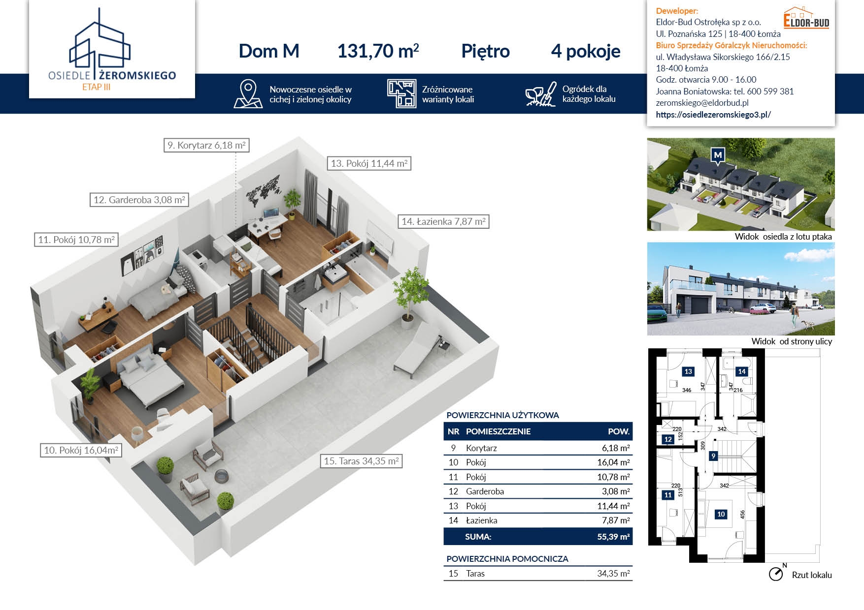 Osiedle położone jest z dala od blokowisk i blisko natury. Dzięki terenom zielonym można cieszyć się zdrowym klimatem oraz czystym powietrzem o każdej porze roku. Budynki wyróżniają się nowoczesną, miłą dla oka architekturą. Mają duże okna, dzięki czemu o każdej porze dnia do wnętrz wpada mnóstwo naturalnego światła. Osiedle Żeromskiego jest znakomitym miejscem dla rodzin z dziećmi, młodych par oraz seniorów. Można znaleźć tutaj nie tylko codzienną wygodę, ale i atmosferę, która sprzyja realizowaniu swoich planów. Wszystkie domy wyróżniają się przemyślanym układem pomieszczeń, zapewniającym domownikom przestrzeń do odpoczynku, pracy, nauki czy zabawy.